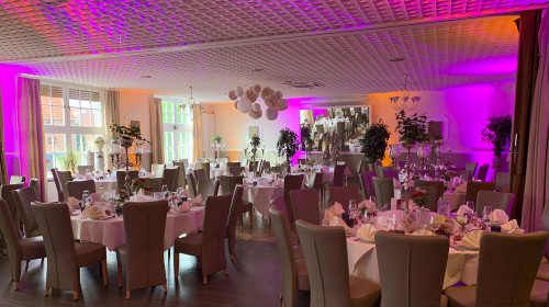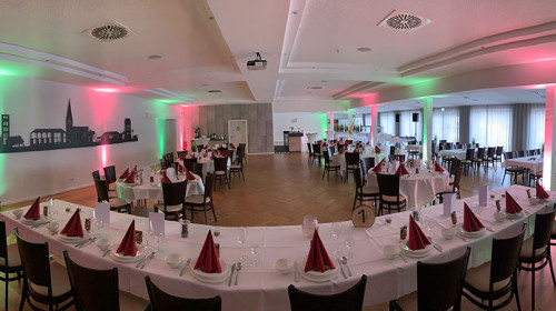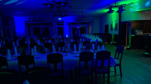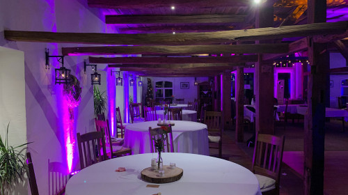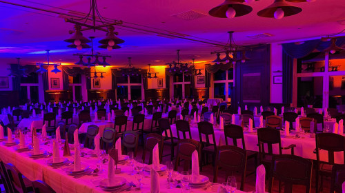 Du möchtest rundum im Saal eine Beleuchtung, um eine gesamte Atmosphäre zu kreieren, die während des Abends passend zur Stimmung und Programmpunkt wechselt? Hier setzen wir auf Ambientebeleuchtung, die zentral gesteuert und in Helligkeit und Farbe angepasst werden kann.