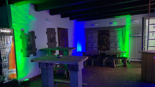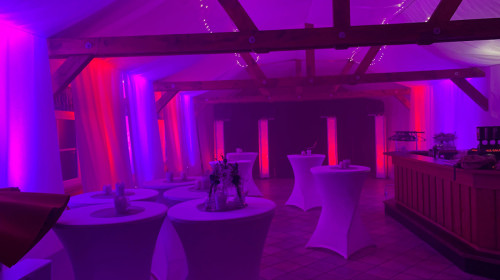 Zusätzlich zum Aufbau der Technik zur Beschallung und Ausleuchtung der Tanzfläche, kann zusätzliche Beleuchtung den Raum aufwerten. Diese wird separat gesteuert, um eine gesamte, einheitliche Atmosphäre zu kreieren. Umsetzbar ist diese Ambientebeleuchtung sowohl drinnen, als auch draußen.