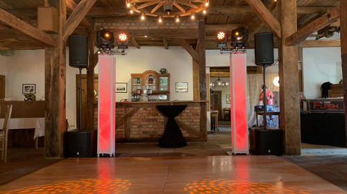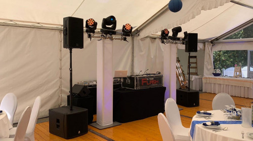 Unsere technische Umsetzung bei Anlässen bis zu 150 Personen, auf Hochzeiten, Geburtstagen, Polterabende, Events auf einem Saal oder in privaten Räumen.